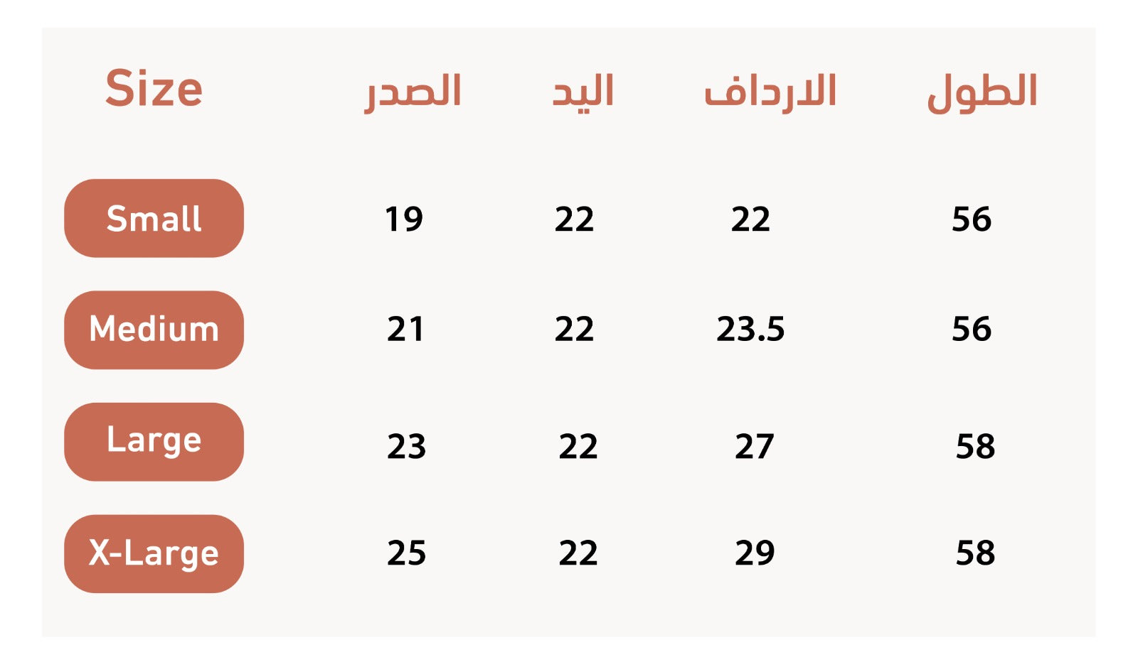 يمكنك الاستعانه بجدول القياسات